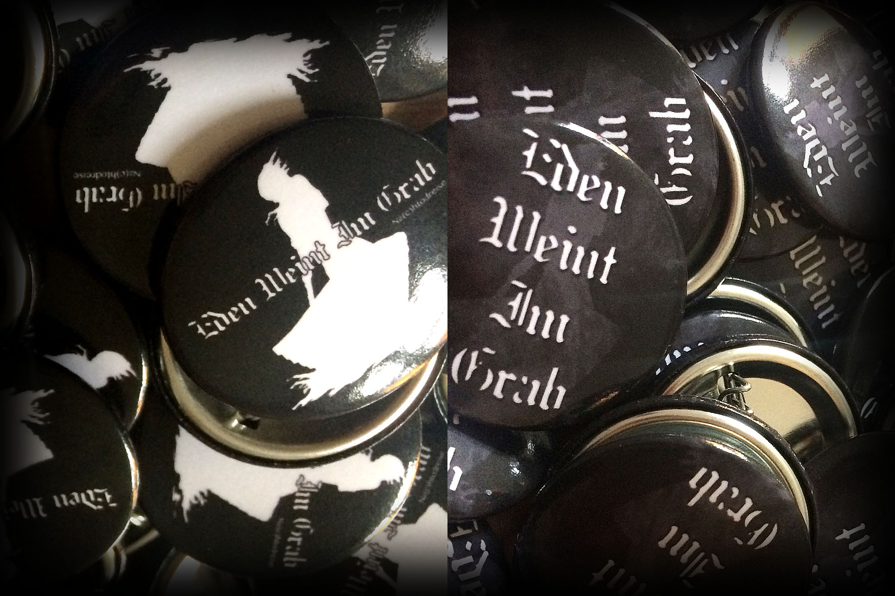 Auf vielfachen Wunsch endlich neu im Programm: Buttons von Eden Weint Im Grab. Für den Anfang gibt es zwei Motive. Das „Na(c)htodreise“-Cover und das Logo. Die Buttons sind rund, haben einen Durchmesser von 3,7cm und einen Nadelverschluss. Für 1€ ausschließlich bei uns im Winter-Solitude-Shop bestellbar!